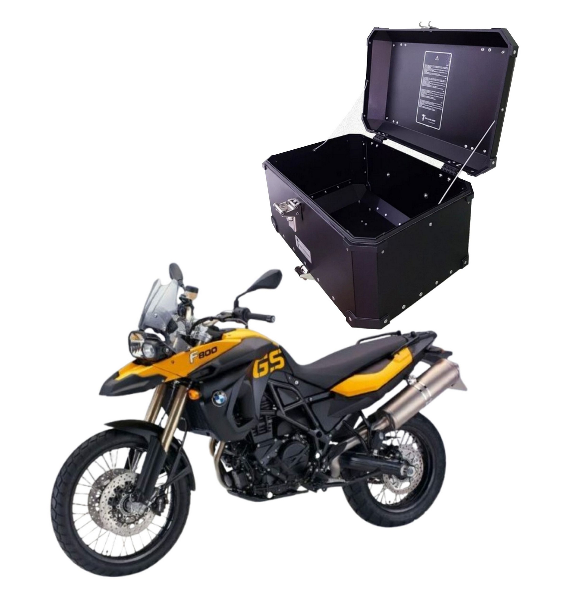 Nesta oferta estão inclusos um (1) Top Case na cor preta de 56L e um Kit de suportes para BMW F800GS/F800GS ADVENTURE.