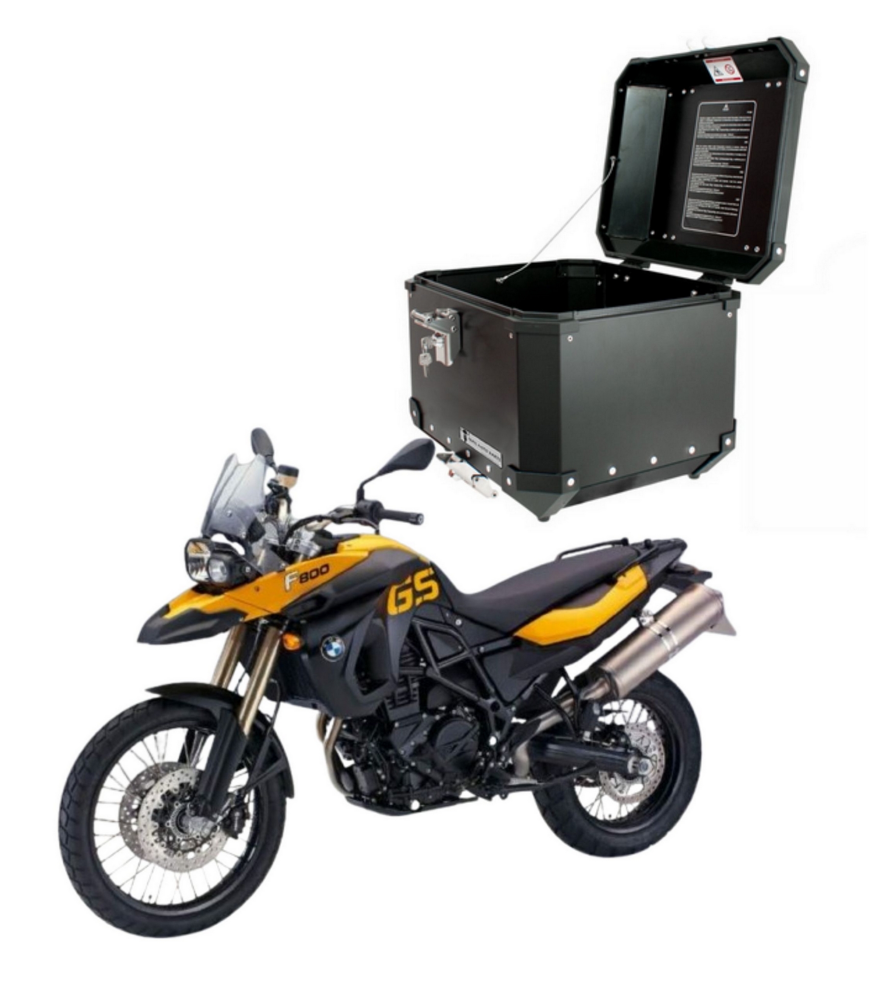 Nesta oferta estão inclusos um (1) TopCase na cor preta e um Kit de suportes para BMW-F800GS / Adventure.