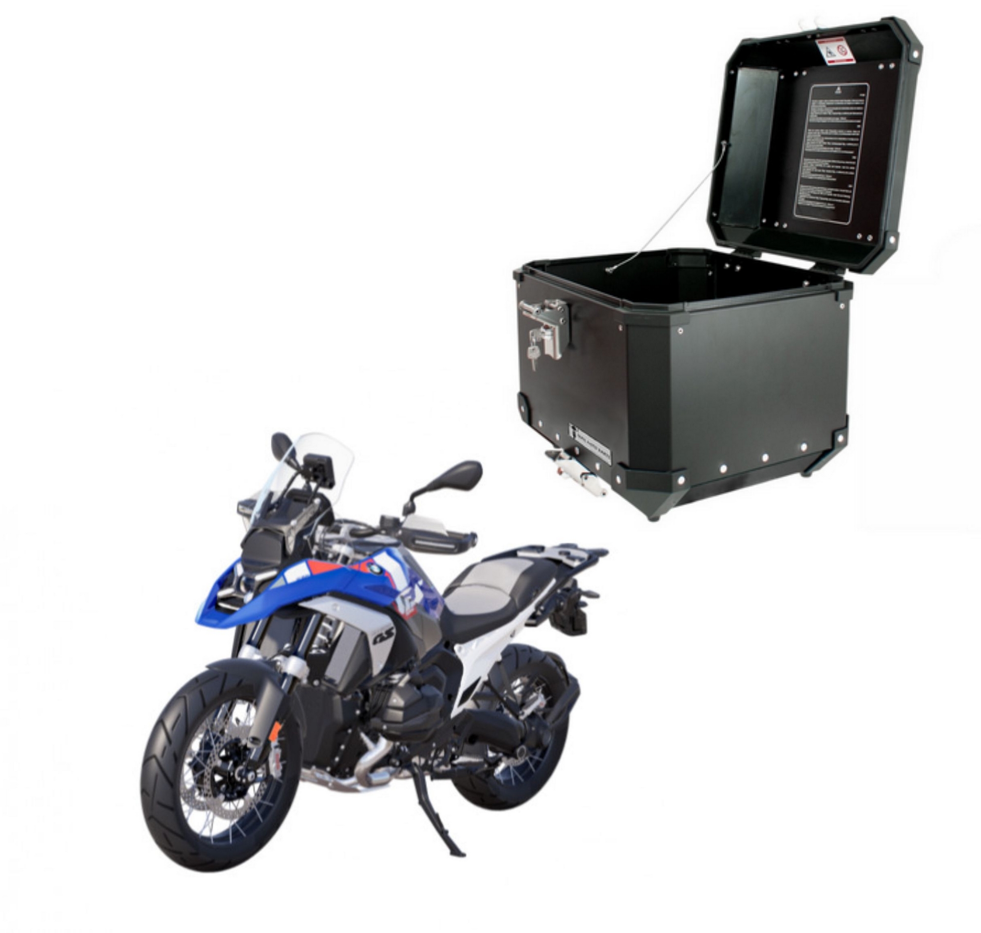 Nesta oferta estão inclusos um (1) Top Case na cor preta e um Kit de suportes para BMW R1300GS .